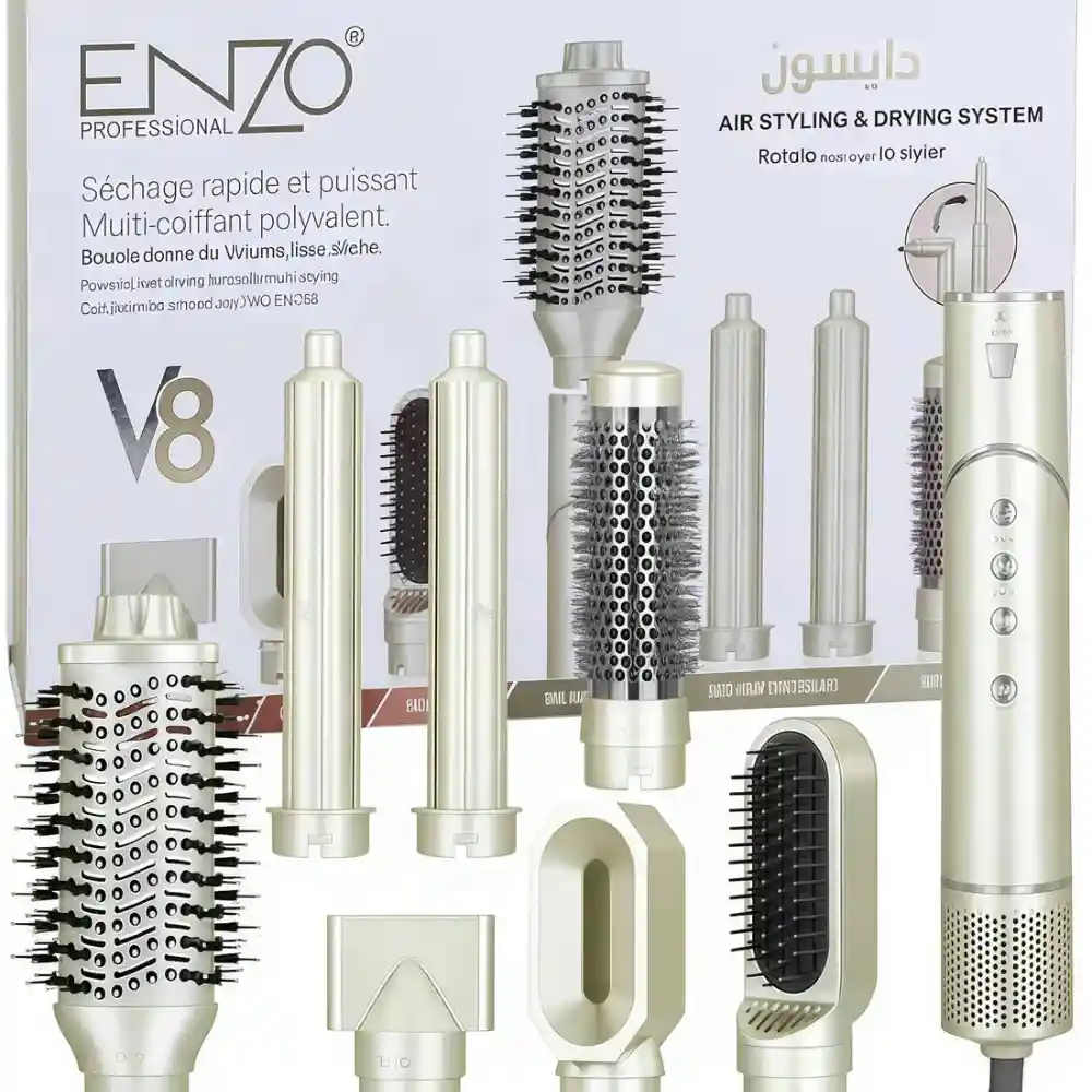 En Algérie, les cheveux subissent quotidiennement les agressions du climat méditerranéen : vent sec du Sahara, humidité de la côte, pollution urbaine d’Alger et de Constantine. Ces conditions extrêmes fragilisent la fibre capillaire, créent des frisottis rebelles et privent vos cheveux de leur éclat naturel. L’ENZO StyleMaster 7-en-1 Appareil Cheveux Professionnel Multi-Usage révolutionne votre routine capillaire en combinant sept fonctions professionnelles dans un seul appareil innovant. Cette technologie européenne avancée permet de transformer vos cheveux abîmés en une chevelure lisse, volumineuse et brillante, digne des plus grands salons de coiffure. Fini les investissements coûteux en multiples appareils : cet outil polyvalent s’adapte à tous vos besoins de coiffage pour des résultats professionnels à domicile.